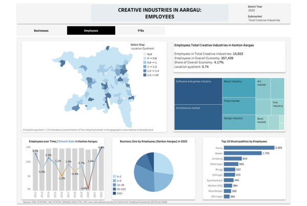 Our research allows us to analyse the size, importance, trends and regional geography of the creative industries and its 13 submarkets in Switzerland.