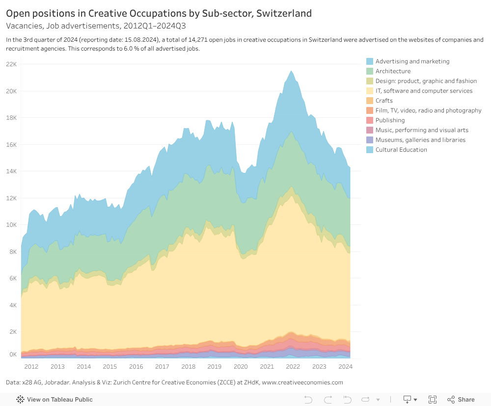 Data: x28 AG, Jobradar. Analysis & Viz: Zurich Centre for Creative Economies (ZCCE) at ZHdK